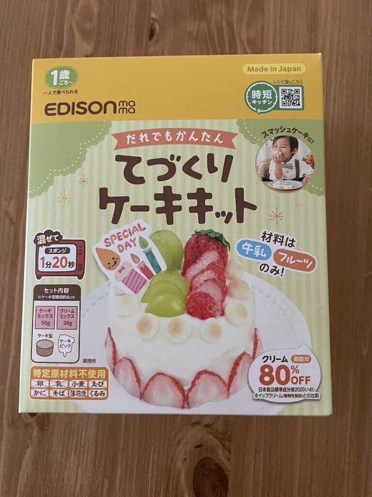 次女が1歳になった2025年は、スマッシュケーキがだいぶ浸透してきたのか、1歳でも食べられるケーキのキッドが販売されていました。