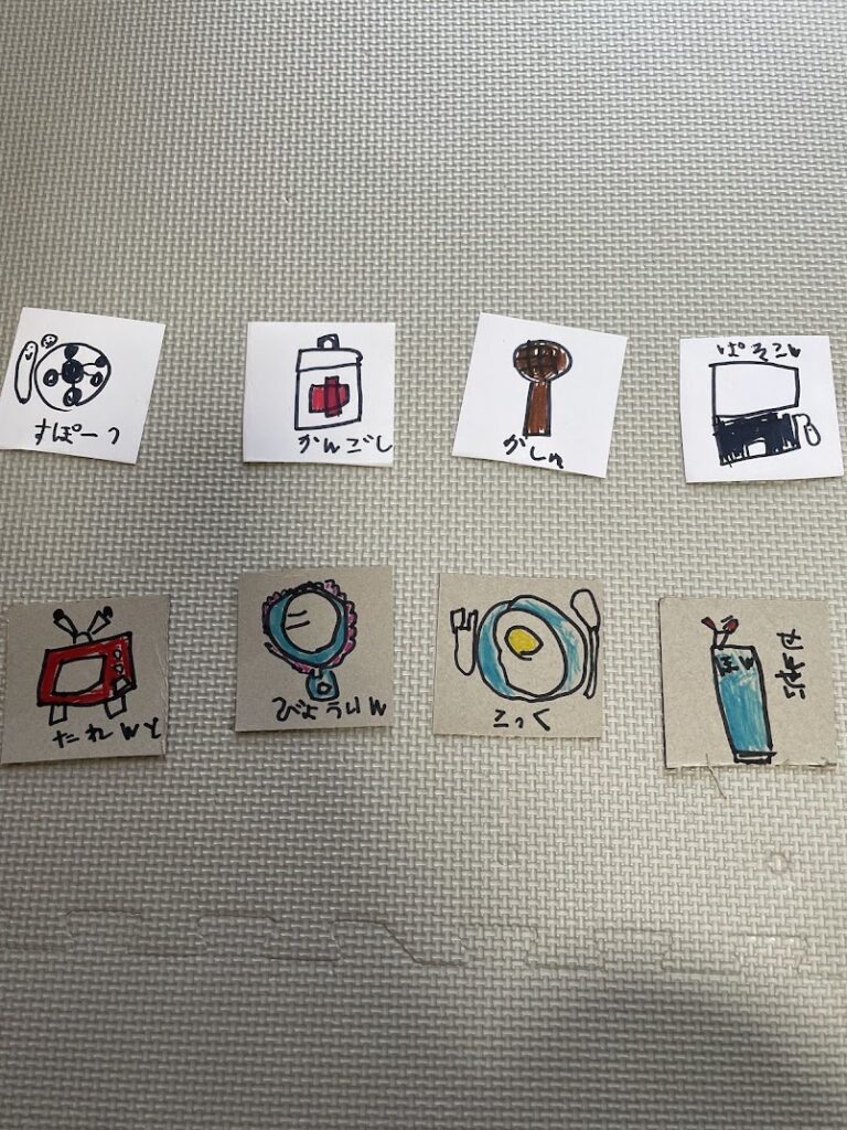 少し離れたところにカードを並べ、ハイハイまたは歩かせて、カードを選んでもらいます。